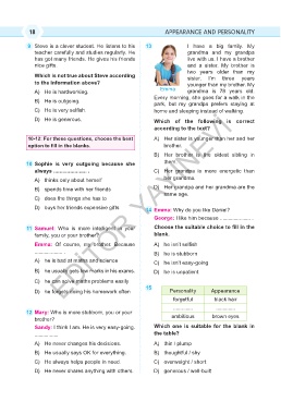 9 Steve is a clever student. He listens to his 13 I have a big family. My