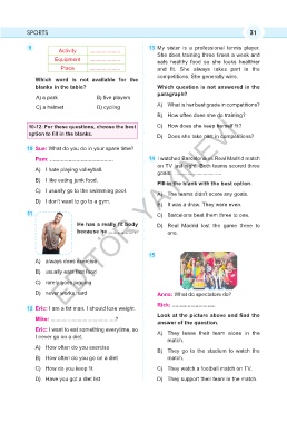 10-12: For these questions, choose the best C) How does she keep herself fit?