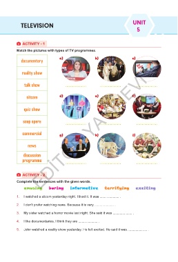 5. John watched a reality show yesterday. He felt excited. He said it was ...................... .