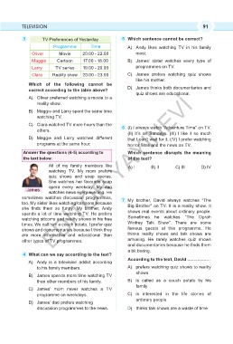 Clara Reality show 20.00 - 23.00 C) James prefers watching quiz shows