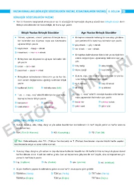• Birleşirken kelimelerden ikincisinin ya da her iki- • Durum, olgu, olay bildiren sözcüklerden biriyle ku-