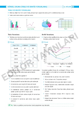 • Tablolar yorumlanırken satırların (yatay alanlar) ve sü- • Çizgi ve sütun grafiklerinde yatay ve dikey iki eksenin