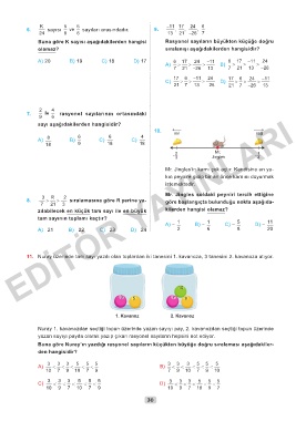 11. Nuray üzerinde tam sayı yazılı olan toplardan iki tanesini 1. kavanoza, 3 tanesini 2. kavanoza atıyor.