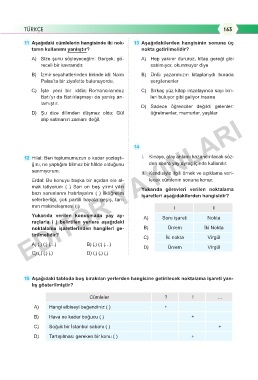 15 Aşağıdaki tabloda boş bırakılan yerlerden hangisine getirilecek noktalama işareti yan-