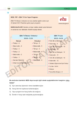 22 Şubat 2021 Pazartesi günü yayın programı www.eba.gov.tr