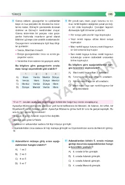Bu bilgilere göre gezegenlerin sırala- Bu bilgilere göre aşağıdakilerden han-