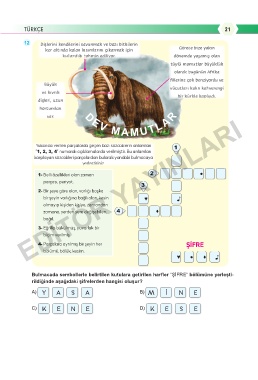 Bulmacada sembollerle belirtilen kutulara getirilen harfler “ŞİFRE” bölümüne yerleşti-