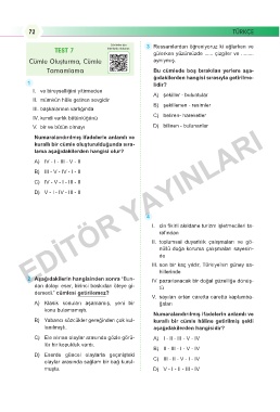 Page 72 - 7. SINIF VIP TÜRKÇE SORU BANKASI - EDİTÖR YAYINLARI