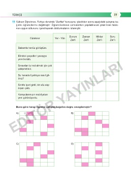 15 Gülcan Öğretmen, Türkçe dersinde “Zarflar” konusunu işledikten sonra aşağıdaki çalışma ka-