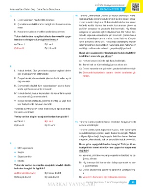 Anayasa’dan Gelen Güç - Daha Fazla Demokrasi KAZANIM TEST 3