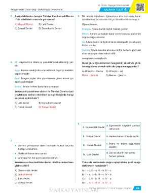 Anayasa’dan Gelen Güç - Daha Fazla Demokrasi KAZANIM TEST 4