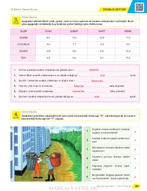 Aşağıdaki tabloda illerin ocak, şubat, mart ve nisan aylarına ait sıcaklık ortalamaları verilmiştir. Buna
