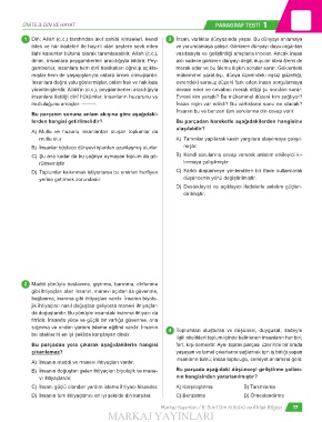 Ünite 3: Din ve HAYAt PARAGRAF TESTI 1
