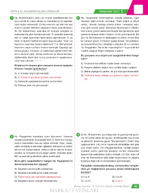 ÜNTE 4: HZ. MUHAMMED’N SAV. ÖRNEKLĞ PARAGRAF TESTİ 1