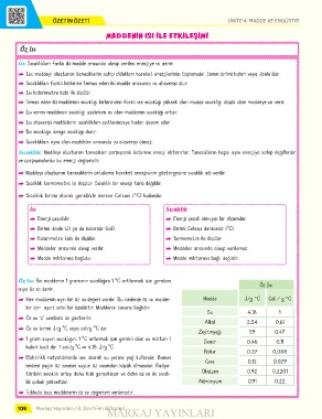Q Tabloda bazı maddelerin öz ısı değerleri verilmiştir.