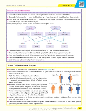 Q İnsanlarda 46 kromozomdan 44 tanesi vücut karakterini, geriye kalan 2 kromozom da cinsiyet karakterini oluşturmaktadır.