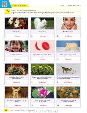 Etkinlik Aşağıdaki resimlerin ilgili olan kutucuklara "Mutasyon, Modifikasyon, Adaptasyon" yazarak belirtiniz.