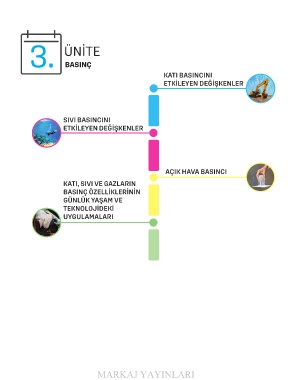 3. ÜNİTE BASINÇ KATI BASINCINI ETKİLEYEN DEĞİŞKENLER SIVI BASINCINI ETKİLEYEN DEĞİŞKENLER AÇIK HAVA BASINCI KATI, SIVI VE GAZLARIN BASINÇ ÖZELLİKLERİNİN GÜNLÜK YAŞAM VE TEKNOLOJİDEKİ UYGULAMALARI MARKAJ YAYINLARI