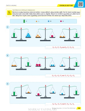 5. Eşit kollu teraziye bırakılan cisimlerin kefelere temas ettikleri yüzey alanları eşittir. Her bir cismin zemine uygu-