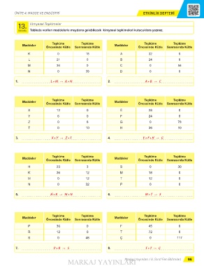 Etkinlik Tabloda verilen maddelerle meydana gelebilecek kimyasal tepkimeleri kutucuklara yazınız.