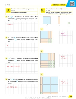 3. x + 24x + 9 ifadesinin bir tam kare cebirsel ifade = x + 6x + 9