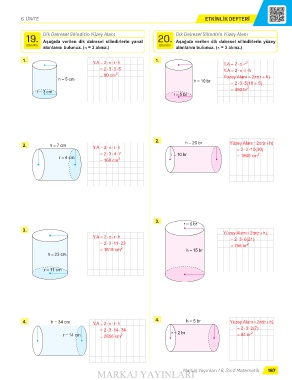 19. Dik Dairesel Silindirin Yüzey Alanı 20. Aşağıda verilen dik dairesel silindirlerin yüzey