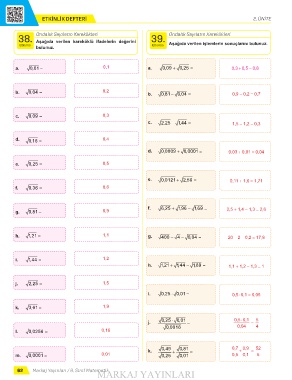 38. Aşağıda verilen kareköklü ifadelerin değerini 39.