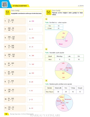51. Daire Grafiği 52. Tabloda verilen bilgileri daire grafiği ile ifade