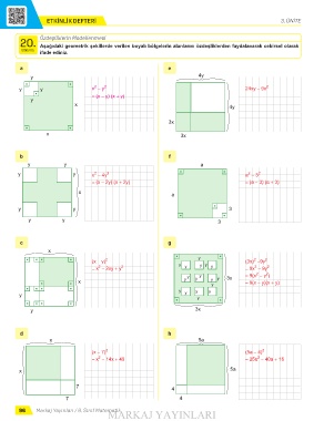 20. Aşağıdaki geometrik şekillerde verilen boyalı bölgelerin alanlarını özdeşliklerden faydalanarak cebirsel olarak