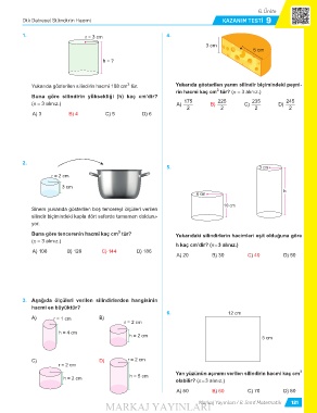 Dik Dairesel Silindirin Hacmi KAZANIM TEST 9
