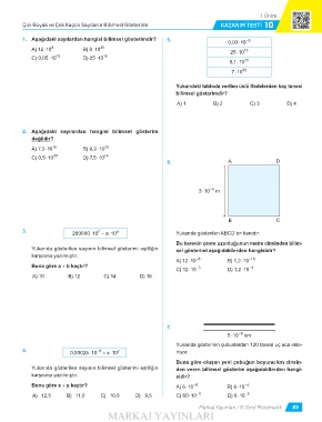 Çok Büyük ve Çok Küçük Sayıların Bilimsel Gösterimi KAZANIM TESTI 10