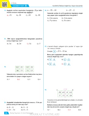 10. Aşağıda ver�len sayılardan hang�s�n�n ñ2 ’ye bölü- 14. A = ò75 + ò48 B = ò27 − ñ3