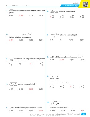 Ondalk Gösterimlerin Karekökleri KAZANIM TEST 10