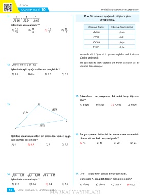 14. 0,3 − 0,05 + 0,4 − 0,04 − 0,5 − 0,01 17. ó0,81 + A işleminin sonucu bir doğal sayıdır.