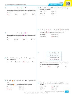 Cebirsel fadeleri Çarpanlarna Ayrma KAZANIM TEST 11