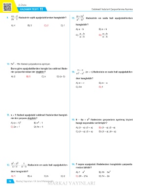 9. 4x − 2 �fades�n�n eş�t� aşağıdak�lerden hang�s�d�r? 13. (a + b) 2 �fades�n�n en sade hal� aşağıdak�lerden