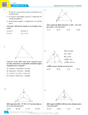 KAZANIM TEST 1 Üçgende Kenarortay, Açortay ve Yükseklik