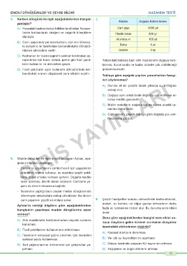 ENERJİ DÖNÜŞÜMLERİ VE ÇEVRE BİLİMİ KAZANIM TESTİ