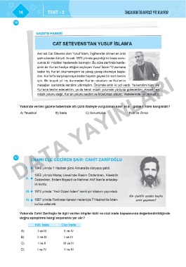 Page 14 - 8. Sınıf Din Kültürü ve Ahlak Bilgisi Beceri Temelli Soru Bankası (Garantör Serisi)
