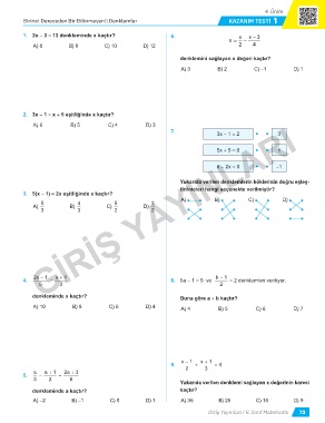 Birinci Dereceden Bir Bilinmeyenli Denklemler KAZANIM TEST 1
