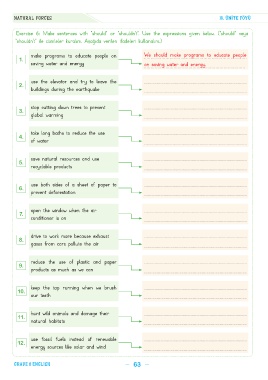 Exercise 6: Make sentences with “should” or “shouldn’t”. Use the expressions given below. (“should” veya