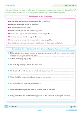Exercise 7: Choose and write the other part of the sentences completing the blanks with “because” or “so”.