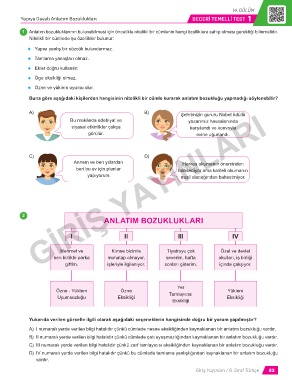 Yapıya Dayalı Anlatım Bozuklukları BECERİ TEMELLİ TEST 1