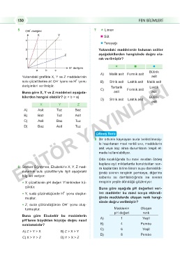 6 Serkan Öğretmen, Ebubekir’e X, Y, Z mad- ra kaplardan birine limon suyu damlatıldı-