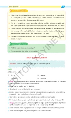 Kazanım: Zekât ve sadaka ibadetini ayet ve hadislerle açıklar.