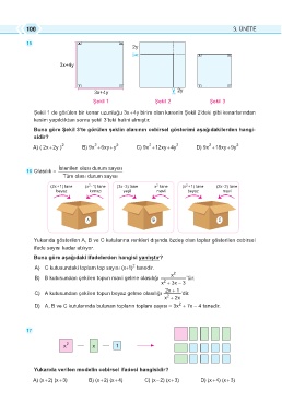 Şekil 1 de görülen bir kenar uzunluğu 3x + 4y birim olan karenin Şekil 2’deki gibi kenarlarından