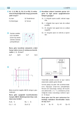 17 A( - 2, 0), B(0, 2), C(4, 2) ve D(2, 0) nokta- 20 Koordinat sistemi üzerinde ayrılan böl-