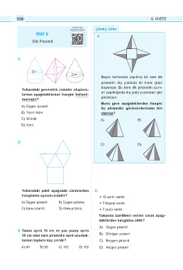 C) Kare piramit D) Kare prizma y 7 yüzü vardır.