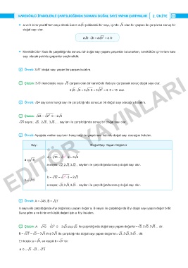 ̚ Çözüm: A = = 45 2 ⋅ 3 =5 3 5 olup 5 ile çarpıldığında doğal sayı yapan değerler = 5, 2 5, 3 5��� dir.