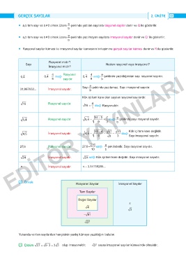 ̚ Çözüm: 27 = ⋅ 9 3 = 3 3 olup irrasyoneldir. ò27 sayısı irrasyonel sayılar kümesinde olmalıdır.